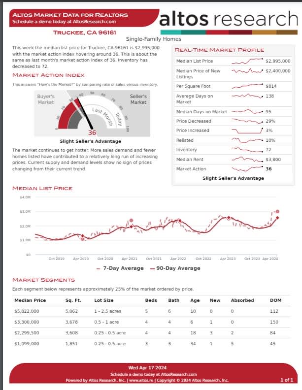 This week the median list price for Truckee, CA 96161 is $2,995,000